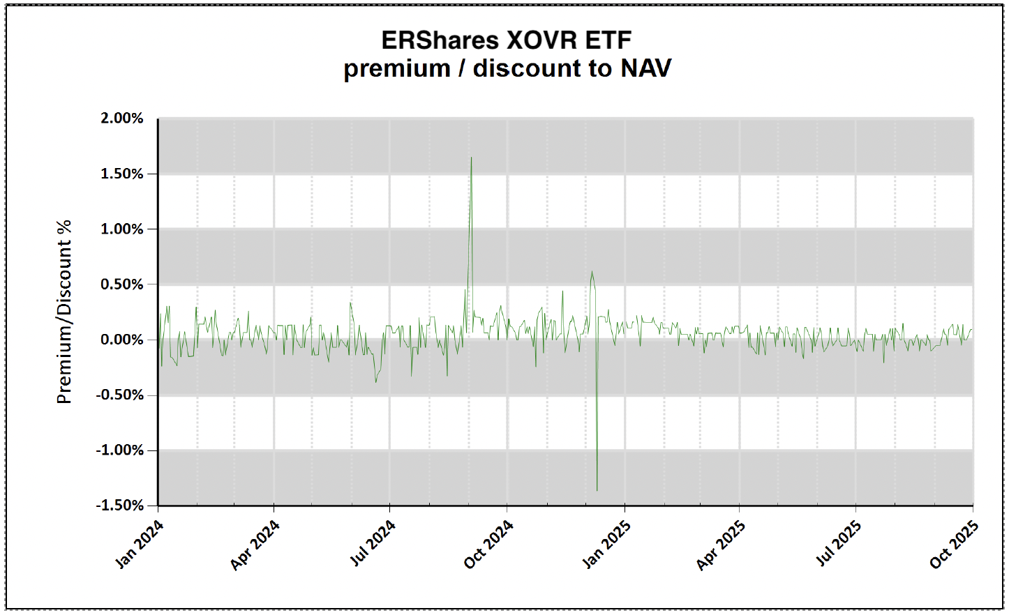 ENTR/XOVR Prior to 08/29/2024 the fund was trading under the ticker symbol ENTR. Since 08/29/2024 the ticker symbol has been changed to XOVR and the approach to accomplishing the investment strategy has changed. This performance represents the complete track record of XOVR and ENTR. Prior to 8/29/2024, ENTR held up to 93 actively traded securities. After 8/29/24 the fund invests primarily (85%+) in the ER30TR Index (30 securities) and the balance in US Large Cap private securities.